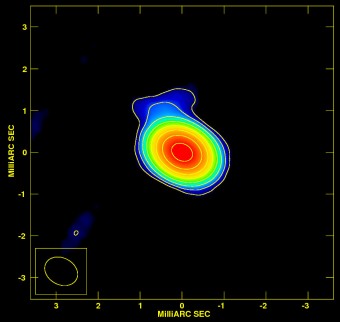 A guidare e coordinare queste osservazioni, i cui risultati sono stati pubblicati questa mattina online in un articolo della rivista Astronomy & Astrophysics, è stato Marcello Giroletti, dell’INAF-IRA di Bologna: “Grazie a questa sensazionale risoluzione siamo riusciti a rivelare una struttura estremamente compatta ed estremamente brillante. Il meccanismo fisico che meglio spiega questi dati richiede la presenza un getto di materia che si muova a velocità prossime a quelle della luce, che possono essere raggiunte soltanto estraendo energia da un enorme buco nero. In effetti, nella nostra immagine è possibile distinguere la base di tale getto”.
