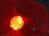 Rappresentazione artistica del campo magnetico di Tau Boötis.