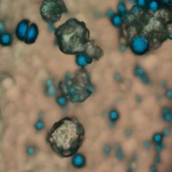 L’olio (in blu) contiene un marcatore tracciabile con ecografia e TAC per consentire ai medici di seguire le microcapsule (in marrone) durante la veicolazione alla massa tumorale. La pelle esterna semipermeabile ha la capacità fisica di rilasciare il farmaco lentamente.