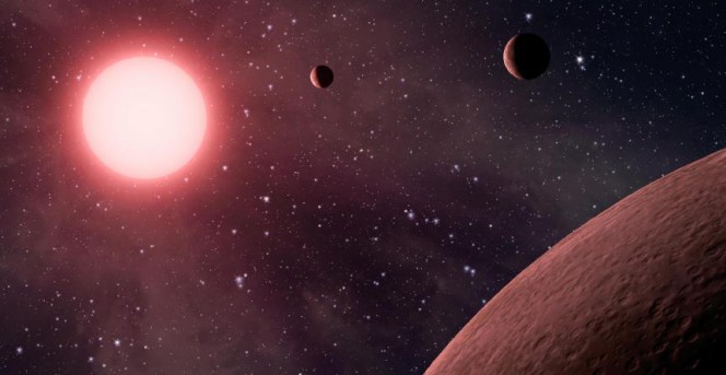 Esopianeti in orbita attorno a una nana rossa, nella rappresentazione grafica di un artista. Crediti: NASA / JPL.