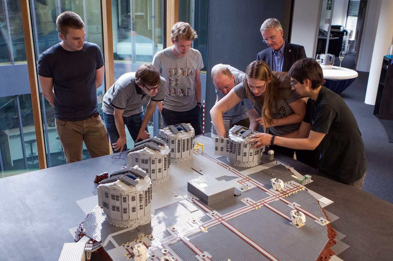 Frans Snik e il suo team al lavoro sul modellino Lego dell’osservatorio Eso del Paranal. Crediti: Eso