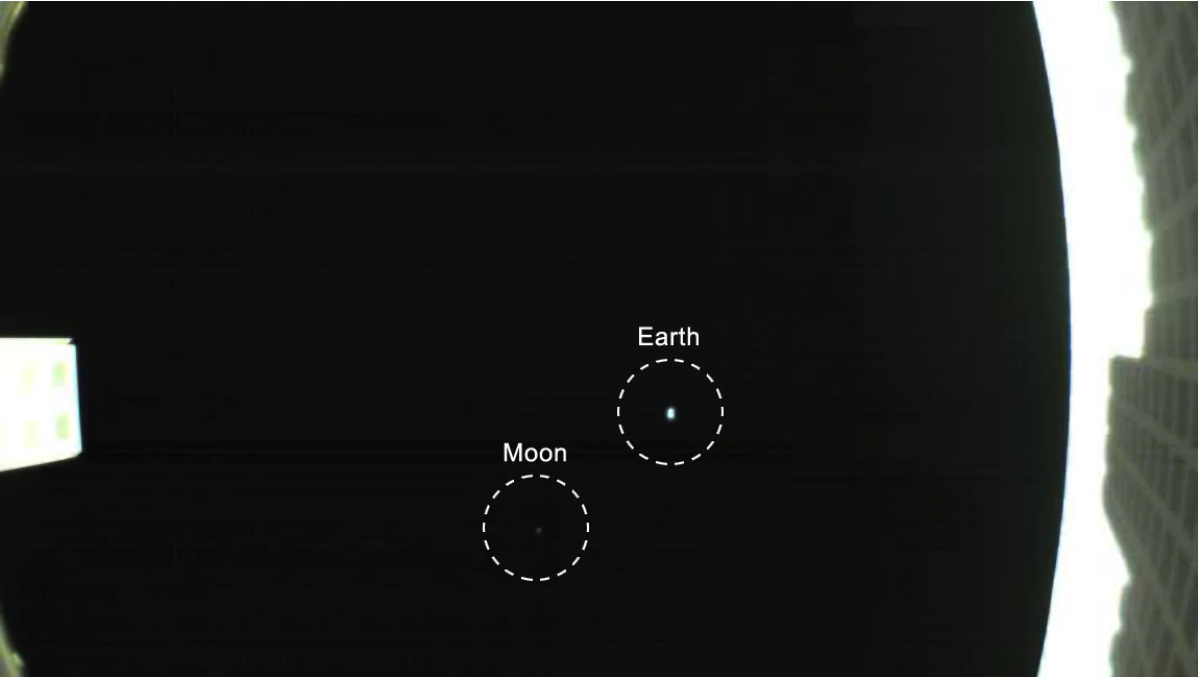 Il giorno successivo, per scattare la sua prima foto, uno dei due CubeSat, chiamato MarCo-B, ha utilizzato una fotocamera con obiettivo fisheye. L’operazione fa parte del programma messo a punto dal team ingegneristico della missione per verificare che l’antenna ad alto guadagno si sia correttamente dispiegata. La Terra e la sua luna erano lì per caso e sono state fotografate.