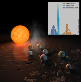 I due astronomi avanzano poi un’ipotesi evolutiva per spiegare la composizione del nuovo gruppo di pianeti: a differenza di quelli rocciosi, che si formano all’interno del cosiddetto “limite della neve” (frost line), i mondi ricchi d’acqua avrebbero origine al di fuori della frost line, per poi migrare verso l’interno – dunque più vicini alla loro stella – solo in un secondo tempo.