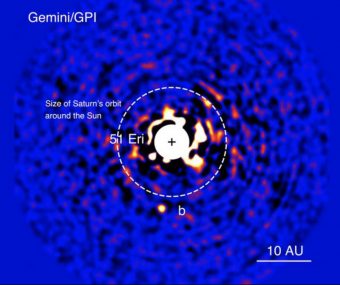 51 Eridani b ripreso nel vicino infrarosso con il Gemini Planet Imager. Crediti: Gemini Observatory and J. Rameau (Udem) and C. Marois Nrc Herzberg