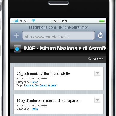 Pagine minimaliste. Si caricano in un istante. E si leggono comodamente anche su un mini-schermo. Da oggi, Media Inaf è disponibile anche in versione per dispositivi mobili. Sempre allo stesso indirizzo: www.media.inaf.it.