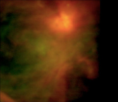 Nel suo primo vero volo, effettuato lo scorso 30 novembre e durato 10 ore, l’occhio di SOFIA ha catturato questa immagine nell’infrarosso della nebulosa di Orione e un giovane cluster di stelle a 3mila anni luce dalla Terra. L’area dal vivido color arancione nell’estremità a destra rappresenta una regione d’intensa formazione stellare, mentre le restanti regioni sono meno attive.