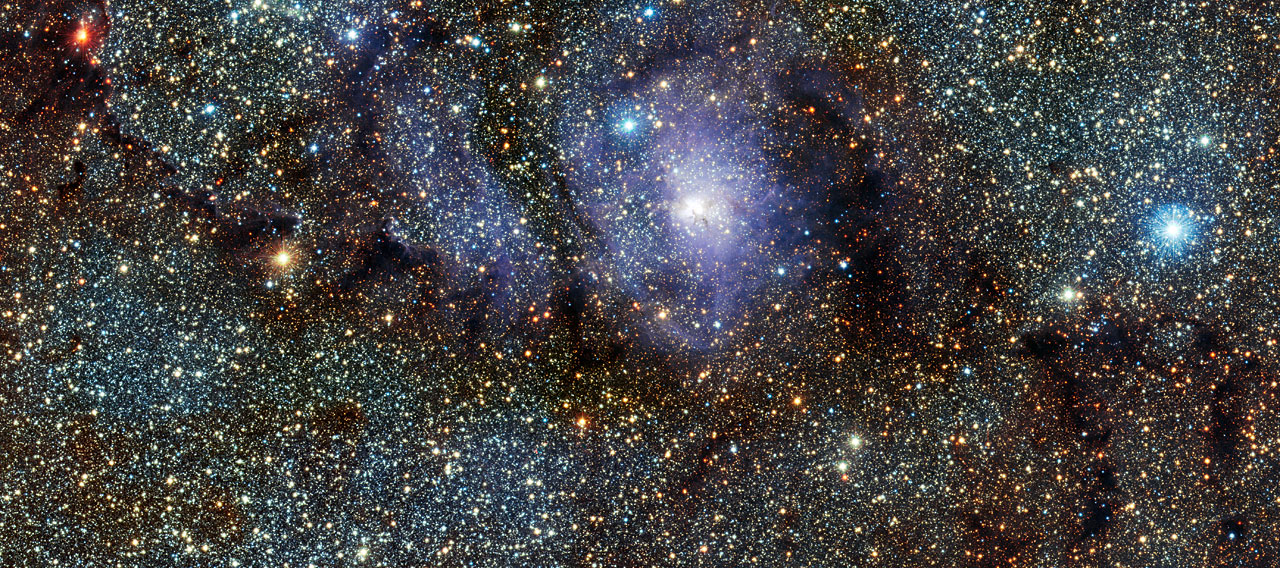 Si tratta, in realtà, di un frammento di un’immagine molto più grande della regione circostante la nebulosa, che, a sua volta, è solo una piccola parte di un’enorme campagna di osservazione. Obiettivo degli astronomi è quello di perlustrare le regioni centrali della Via Lattea alla ricerca di sorgenti variabili sia nella banda visibile che in quella infrarossa e per mappare la struttura della Via Lattea in modo più dettagliato di quanto fatto finora. La campagna, chiamata chiamata ‘VISTA Variables in Via Lactea‘ (VVV), ha prodotto varie immagini compresa quella presentata in questa occasione, che mostra il vivaio stellare chiamato Nebulosa Laguna , a circa 4.000-5.000 anni luce di distanza da noi nella costellazione del Sagittario.