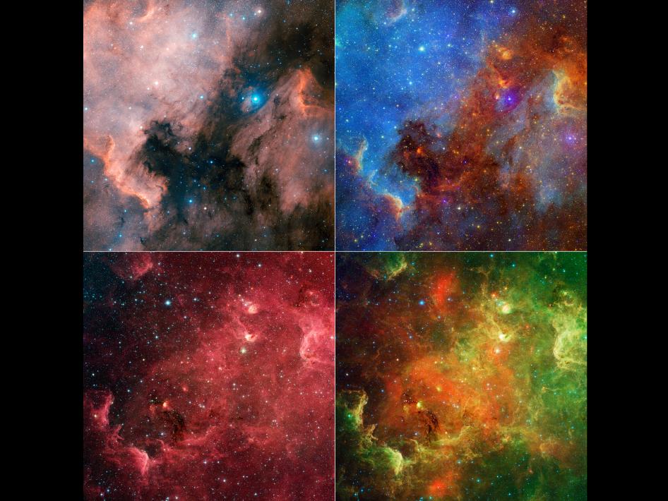 Gli scatti di Spitzer ritraggono la Nebulosa nell’infrarosso (in progressione, l’immagine in alto a destra è un’elaborata sia nelle frequenze visibili della luce che infrarosse, mentre le altre due sono state scattate solo nell’infrarosso) e permettono di guardare al suo interno, al di là della coltre di polvere che avvolge la regione. Dentro, i ricercatori hanno trovato una famiglia molto numerosa di giovani stelle (da uno a tre-cinque milioni di anni). Ne hanno contate circa 2000 candidate: nuove stelle stelle appena nate o che stanno per nascere. Prima di queste immagini, solo 200 di queste baby-stars erano conosciute.