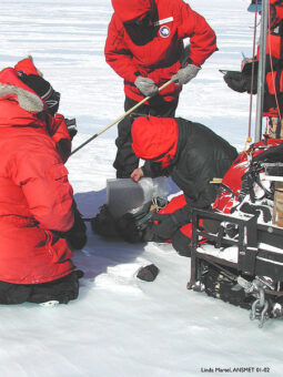 Si è da poco conclusa la spedizione 2010/2011 del programma ANSMET, Antartic Search for Meteorites, progetto finanziato dal 1976 da NASA e National Science Foundation statunitense per la raccolta di meteoriti sepolti sotto i ghiacci. Per tre mesi i ricercatori del team hanno setacciato l’immenso plateau antartico a caccia di meteoriti. Le zone polari sono veri e propri scrigni dove i frammenti dei corpi celesti caduti dallo spazio si conservano meravigliosamente, come non avviene in altre parti della Terra. È abbastanza facile individuarli visivamente: sassi neri che spiccano bianco abbagliante della neve.