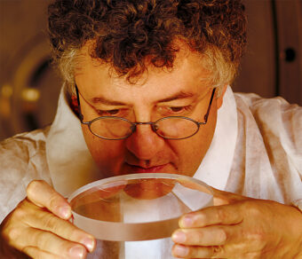 Il procedimento, chiamato Ion Beam Figuring (IBF), si basa su una sorta di sabbiatrice atomica: un cannone in grado di sparare non sabbia o microsfere metalliche, come avviene di solito, bensì un fascio di ioni di gas. Il vantaggio non sta solo nella precisione: la tecnologia IBF si può applicare a qualunque tipo di forma ottica (free-form), ed è deterministica. «A seconda del tempo in cui il fascio rimane in una data zona», spiega infatti Mauro Ghigo, ricercatore all’INAF di Brera e responsabile del team di ricerca per la lavorazione ionica degli specchi, «viene rimossa una maggiore o minore quantità di superficie. In tal modo – essendo nota a priori la forma della superficie con relativi errori, la quantità di materiale rimossa per unità di tempo e la superficie finale voluta – è possibile calcolare esattamente quanto tempo il fascio di ioni deve insistere su una determinata zona, rimuovendo così tutti gli errori fino a ottenere la superficie desiderata. Ed è sufficiente un unico ciclo per arrivare a convergenza».