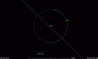 Animazione della traiettoria dell'asteroide 2005 YU55, in previsione del passaggio ravvicinato con la Terra, l'8-9 novembre 2011. Credit: NASA/JPL-Caltech