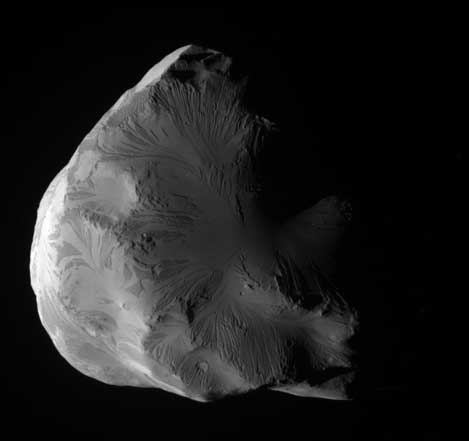 È minuta, poco più di 30 chilometri di diametro. È stata scoperta nel 1980. Prende il nome dalla più bella figura femminile della mitologia greca. E incantevole, la piccola luna di Saturno, lo è davvero, come mostra questo scatto “al naturale” ripreso dalla sonda Cassini.