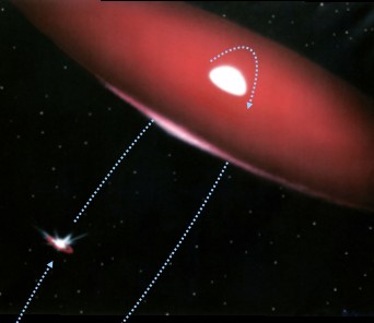 Una tale accoppiata non poteva che suscitare l’interesse degli astrofisici, soprattutto dopo aver scoperto che ogni tre anni e cinque mesi le due stelle raggiungono la minima distanza l’una dall’altra: circa 63 milioni di chilometri, meno della metà della distanza della Terra dal Sole. Un minimo toccato verso la fine dello scorso anno che ha messo in allerta i maggiori telescopi spaziali: da Fermi a Swift, da XMM-Newton a INTEGRAL, pronti a cogliere le conseguenze prodotte da quell’avvicinamento. Conseguenze previste dalla teoria, che hanno origine nel disco di gas che circonda la stella più grande. Durante il periodo di massimo avvicinamento la pulsar entra ed esce due volte da questo disco: ogni volta dà una botta di energia alle particelle del gas che subiscono così un’ improvvisa accelerazione, emettendo intese quantità di energia nelle varie lunghezze d’onda.