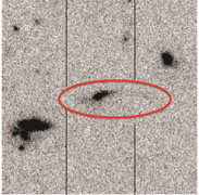 Un'immagine della galassia dall’archivio dell’Hubble Space Telescope, che mostra come la galassia scoperta sia fortemente distorta, con estese code stellari a destra e sinistra. L’immagine è disponibile grazie alla cortesia di Michael Rauch