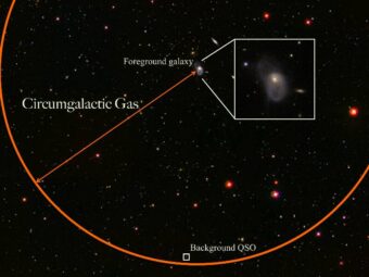 In un secondo articolo, un altro gruppo di ricerca guidato da Jason Tumlinson (Space Telescope Science Institute) ha utilizzato il telescopio spaziale Hubble per scrutare le ‘periferie’ di 42 galassie, con l’obiettivo di capire se queste bolle di gas ricche di elementi chimici pesanti siano una caratteristica comune delle galassie con processi di formazione stellare in corso. E in effetti, aloni di gas molto caldo in cui è presente ossigeno ionizzato sono stati individuati intorno a gran parte delle galassie con giovani stelle al loro interno, mentre non se ne trova traccia nelle vicinanze di quelle che mostrano una processi meno marcati di evoluzione. In alcuni casi, gli aloni di gas contenevano una quantità di elementi pesati addirittura maggiore di quella presente in tutta la galassia che circondavano, e sono stati osservati a distanze di quasi 500.000 anni luce dal centro delle galassie. I ricercatori ritengono che questi aloni rappresentano il componente basilare presente nella stragrande maggioranza delle galassie con formazione stellare.