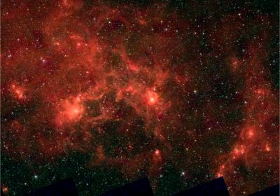 Simili regioni di formazione stellare sono già state individuate in altre galassie, risultando però troppo lontane per riuscire a ottenere immagini dettagliate. Questa volta la zona si trova nella nostra Galassia, a circa 30.000 anni luce di distanza: una situazione favorevole, che permette persino di contare alcune dozzine di stelle. In totale, però, le stelle di quel gruppo devono essere centinaia di migliaia, parte delle quali molto giovani e turbolente. Proprio queste ultime emettono intese quantità di energia che hanno spinto via il gas circostante, sino a dare alla nube una forma analoga a quella di un pesce con la bocca spalancata.