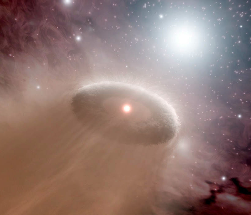 Rappresentazione artistica di un disco protoplanetario in evaporazione. Crediti: NASA/JPL-Caltech/T. Pyle (SSC)