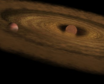 Lei è una giovane palla di gas che sogna di diventare una stella. Lui pure è una palla di gas, ma s’accontenta di fare il pianeta. Non un pianeta qualunque, però: fra quelli al di fuori del Sistema solare, corre voce che sia stato il primo a farsi paparazzare. I due si corteggiano in una danza orbitale a 170 anni luce da noi, affidando la privacy al disco di polveri e gas che li avvolge. Protezione che nulla è valsa, però, per tenerli al riparo dall’occhio indiscreto di Herschel, il più grande telescopio spaziale dell’ESA. Con i suoi sensori a infrarossi, Herschel è infatti riuscito a catturare uno fra i segreti più gelosamente custoditi dall’insolita coppia, dando così una seppur parziale risposta a un quesito che da tempo arrovella gli astronomi: come nasce un pianeta?