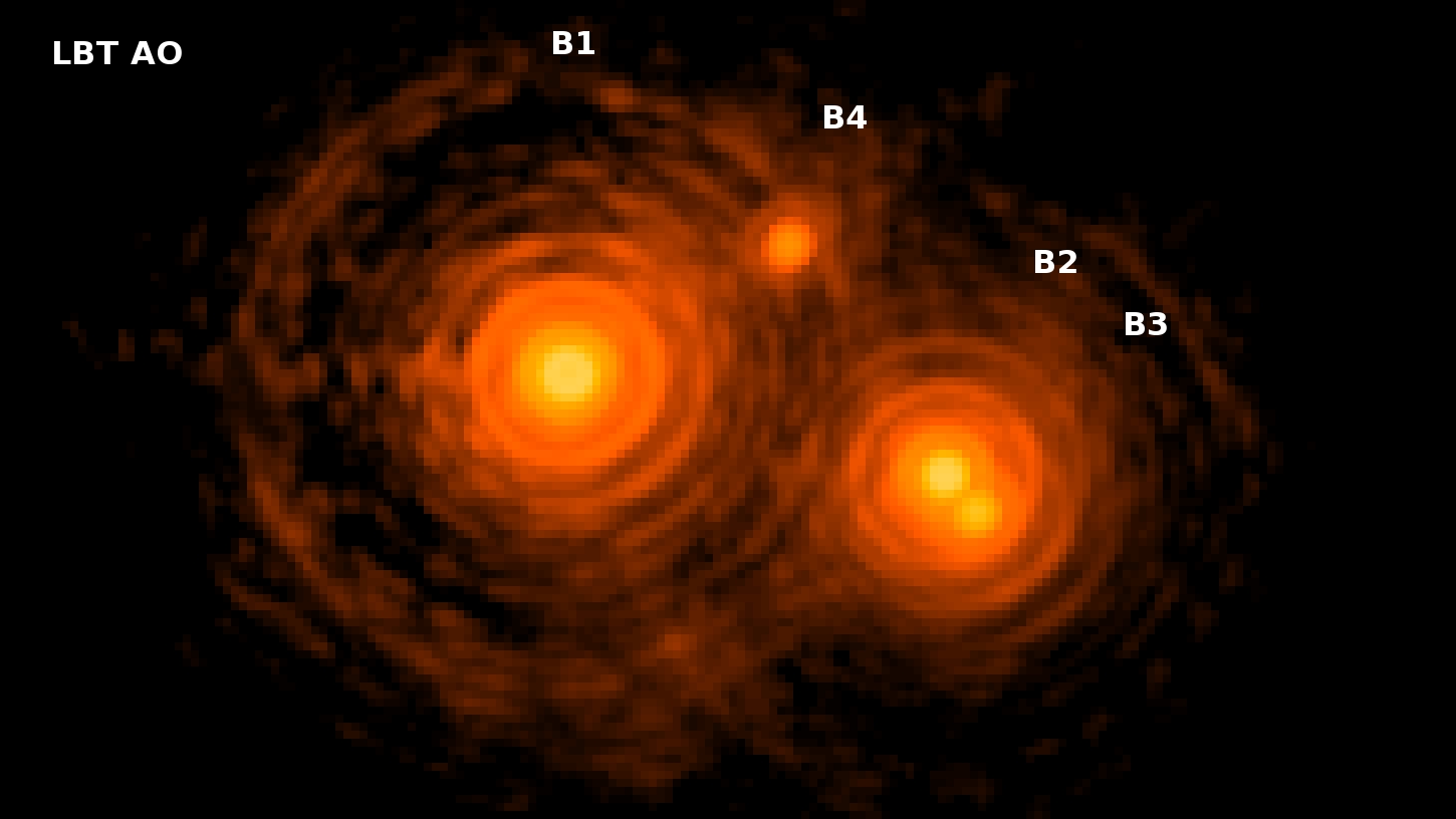 LBT ha prodotto le migliori immagini oggi disponibili del sistema planetario attorno alla stella HR 8799, che si trova in direzione della costellazione del Pegaso e dista da noi circa 130 anni luce. Grazie a queste nuove accurate osservazioni, è stato possibile rivelare per la prima volta nella banda del vicino infrarosso il quarto pianeta, il più vicino alla sua stella madre, precedentemente scoperto a lunghezze d’onda maggiori. Ma oltre ai pianeti, intorno ad HR 8799 si troverebbero due probabili fasce di asteroidi, una all’interno e una all’esterno dei 4 pianeti, rendendolo in qualche modo simile al nostro Sistema Solare. “La misura della luminosità a varie lunghezze d’onda del pianeta appena scoperto e degli altri che compongono il sistema ci consentono di compiere un passo fondamentale nello studio di questi oggetti celesti: studiare finalmente le caratteristiche delle loro atmosfere” dice Silvano Desidera, dell’INAF-Osservatorio Astronomico di Padova. “I risultati indicano la presenza di strati di nubi di vario spessore, che rendono le atmosfere diverse da quelle delle nane brune con temperature simili. Inoltre abbiamo ricostruito le possibili orbite dei quattro pianeti, trovando fondati indizi per ritenere che siano meno massicci di quanto pensato finora”.