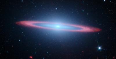 Non è la solita visione della celebre galassia, ma è altrettanto spettacolare. Nella ripresa di IRAC è chiaramente visibile in rosso un disco di gas caldo prodotto da processi di formazione stellare in corso nella zona attorno al nucleo centrale (in blu).