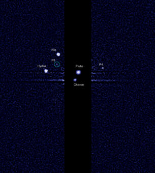 La più grande delle lune di Plutone, Caronte, fu scoperta nel 1978. Grazie alle osservazioni di Hubble nel 2006 furono scoperte altre due lune, Nix e Hydra, mentre una terza, P4, fu “ricavata” dai dati ottenuti con il telescopio spaziale nel 2011.