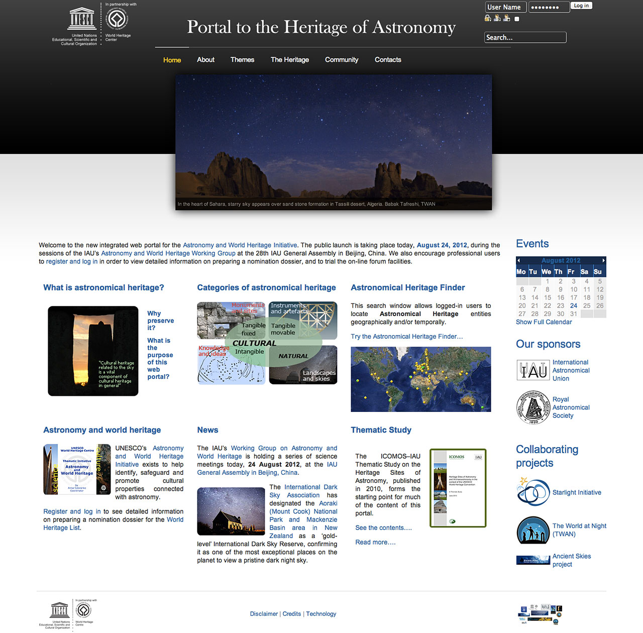 Il nuovo portale ha come obiettivo di fornire ai suoi utenti un data base di quelli che sono i siti mondiali storicamente più importanti per l’astronomia anche se non fanno parte della “World Heritage List”, i siti patrimonio dell’umanità. Inoltre sarà possibile partecipare a forum e discussioni sul sito perché questo mantenga il dinamismo teso al suo rinnovamento continuo che si sono proposti i realizzatori del portale.