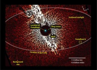 Il lavoro di Currie approfondisce anche l’analisi di un altro punto molto dibattuto, l’orbita del pianeta. Fomalhaut b (qualunque cosa sia) si trova in mezzo a un anello di polveri che circonda la stella, simile a quelli di Saturno. Ma dai dati iniziali non era ben chiaro che rapporto avesse con esso. Se è lui a fare da “pastore” e influenzare l’orbita dell’anello, allora deve avere un’orbita allineata con esso, cosa messa in dubbio da diverse osservazioni. Lo studio di Currie invece conferma che il pianeta si muove con una velocità e un’orbita coerente con l’idea che la sua gravità dia forma all’anello.