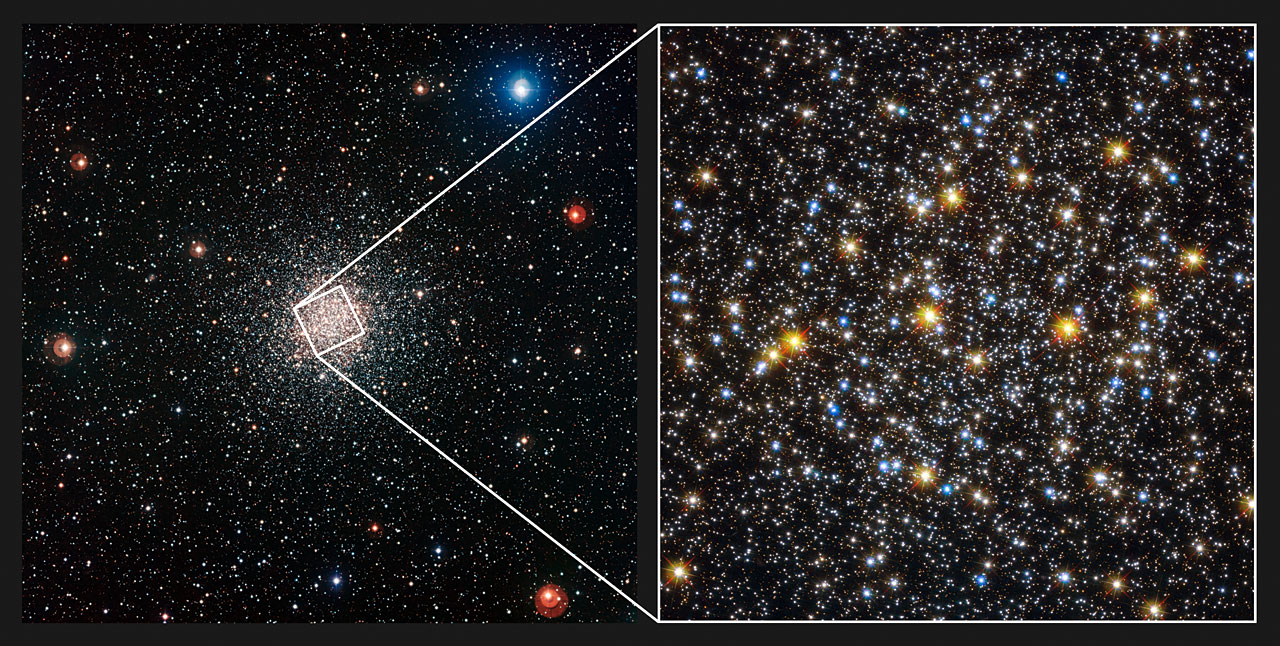 Nell’ingrandimento la regione centrale dell’ammasso globulare