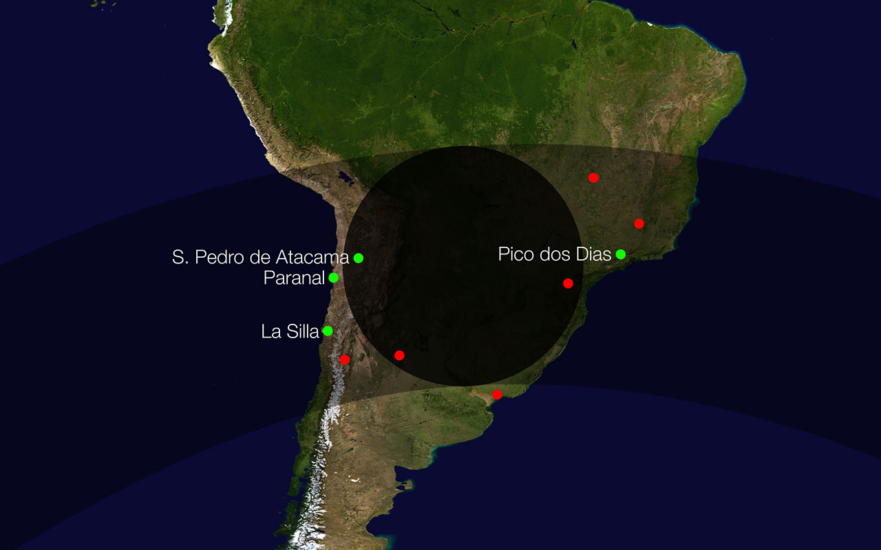 Percorso dell’ombra di Makemake quando ha incrociato la Terra il 23 aprile 2011