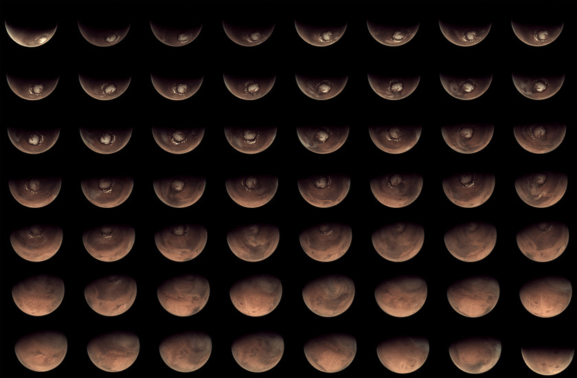 Tutte le foto sono state scattate da una altitudine di circa 10 000 Km dal pianeta ma con un punto di vista che cambia nei mesi, in funzione dell’orbita della sonda Mars Express. Nella loro sequenza, si possono leggere i cambiamenti climatici che avvengono sul pianeta Marte al passare dei mesi. Nelle prime immagini, realizzate a Maggio, è inquadrata l’estate e il ghiaccio si è ritirato intorno al polo nord del pianeta. In quel momento, l’orbita della sonda viene modificata per supportare l’arrivo di Curiosity, inquadrando la zona dell’atterraggio. A fine settembre, la traiettoria seguita dalla sonda fa perdere di vista il polo nord e l’attenzione si focalizza, nelle immagini realizzate tra maggio e giungo, sulle impressionanti strutture di nubi che si iniziano ad avvistare.