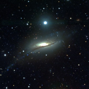 La galassia a spirale controrotante NGC 5719 ottenuta con la camera a grande campo del Large Binocular Telescope. È visibile una parte del ponte di materia che collega NGC 5719 con la galassia compagna NGC 5713 e che alimenta la formazione delle stelle in rotazione retrograda. Crediti: A. Pizzella/Large Binocular Cameras Team