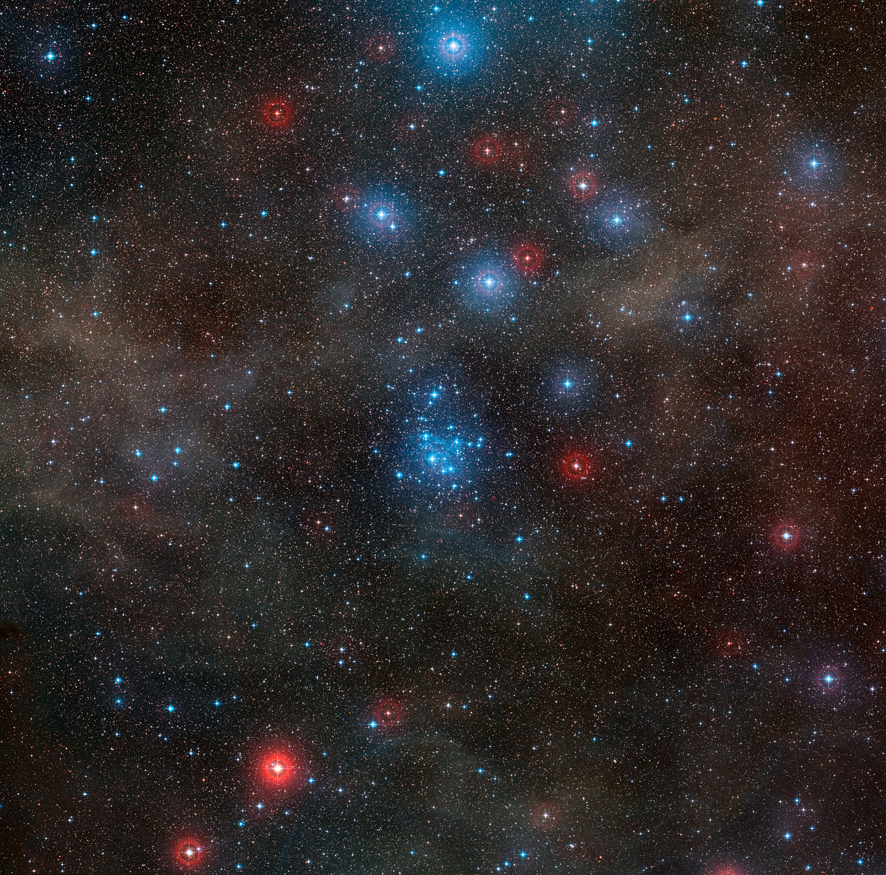 Questa fotografia è stata creata a partire dalle immagini della DSS2 (Digitized Sky Survey 2): mostra la regione di cielo, ricca di stelle, intorno al giovane ammasso aperto NGC 2547, nella costellazione australe della Vela.