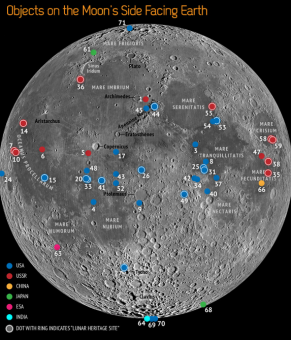 Jeff Plescia, dell’Applied Physics Laboratory della Johns Hopkins University, guida un progetto che, usando soprattutto le immagini riprese dalla camera a bordo del Lunar Reconnaissance Orbiter, punta a localizzare quanto più possibile tra i contributi umani al paesaggio lunare.