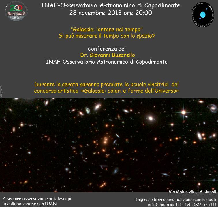 La conferenza dal titolo Galassie lontane nel tempo: si può misurare il tempo con lo spazio? dell’astronomo Giovanni Busarello e le osservazioni ai telescopi suggelleranno questa festa con e per i bambini perché in fondo una grande scoperta nasce dalla curiosità e dalla fantasia!