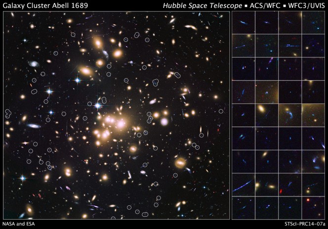 Le 58 galassie remote ottenute grazie all’ammasso di galassie Abell 1689.