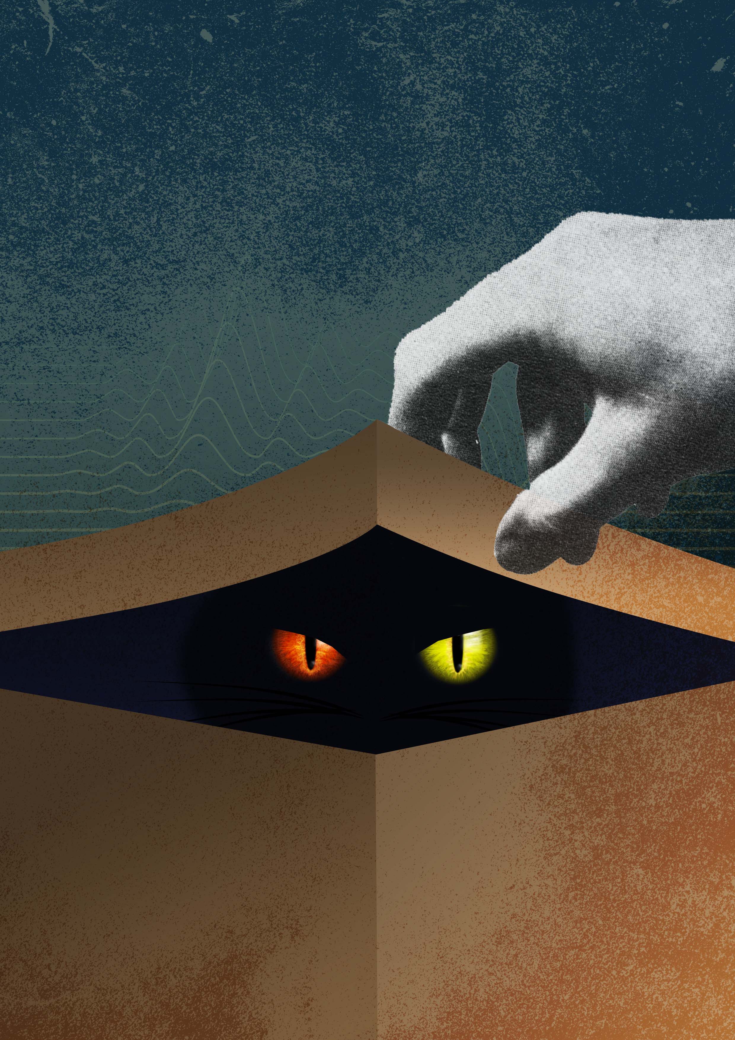 Schrödinger definisce l’entanglement “Il tratto più caratteristico della meccanica quantistica, che segna la sua radicale divergenza dalla concezione classica.” E per spiegarlo, elabora un esperimento mentale che diventerà presto noto col nome di “gatto di Schrödinger”. In pratica il fisico immagina che un gatto sia rinchiuso per un’ora in una scatola contenente un sistema atomico instabile, collegato a un meccanismo in grado di liberare un potente veleno. Se in quell’intervallo di tempo il sistema rimane isolato e nessun atomo subisce un processo di decadimento che liberi il veleno, allora il gatto sarà ancora vivo; se invece almeno un atomo subisce questo processo, allora allo scadere del tempo il gatto sarà morto. Ma c’è un problema: solo l’osservazione potrà dirci quale delle due possibilità si è realizzata; nel fattempo, lo stato del sistema risulterà indeterminato. Infatti la funzione d’onda del sistema completo risente della sovrapposizione cui è soggetto il sistema atomico microscopico, che però si “trasferisce” anche a livello macroscopico. In altri termini: poiché non è possibile sapere in anticipo l’esatto istante in cui avverrà il decadimento spontaneo del sistema atomico, allora esiste soltanto la probabilità che entro un certo tempo ciò si verifichi; ma fino a quel momento l’intero sistema si troverà in una sovrapposizione di stati. Questo significa che lo stato del gatto risulta entangled con quello del sistema atomico: il che ci porta a una sovrapposizione piuttosto scioccante, quella delle proprietà vivo e morto.