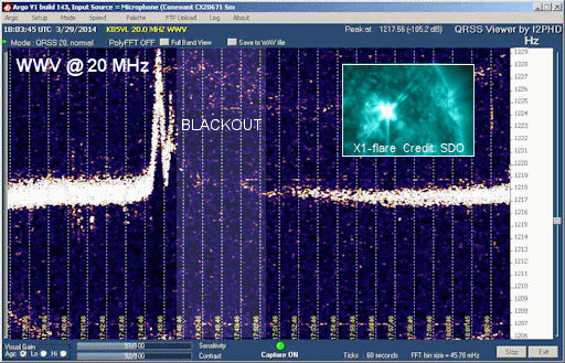 L’effetto di ionizzazione globale della ionosfera prodotto dal brillamento ha disturbato la normale propagazione delle trasmissioni radiofoniche in onde corte, producendo un blackout di alcuni minuti. Come ha potuto ben osservare Stan Nelson, ingegnere radio a Roswell, in New Mexico (USA), che stava controllando la banda radio su cui il NIST (National Institute of Standards and Technology) trasmette per tutto il giorno informazioni di servizio su tempo e frequenze. “L’oscillazione del segnale poco prima del blackout era quasi 12 Hz, il massimo che abbia mai visto”, ha detto Nelson.