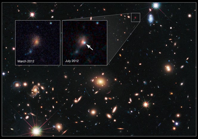 Dove non arrivano i telescopi tradizionali, arrivano le cosiddette lenti cosmiche, cioè una o più galassie la cui gravità permette di deflettere e amplificare la luce di altre galassie o di stelle e supernove altrimenti troppo lontane per essere osservate. È questa la scoperta realizzata da due gruppi di astronomi del Supernova Cosmology Project e del Cluster Lensing And Supernova survey with Hubble (CLASH), che hanno osservato per la prima volta tre lontane supernovae usando il telescopio di NASA ed ESA Hubble e il valido aiuto di tre massicci cluster di galassie, Abell 383, RXJ1532.9+3021 e MACS J1720.2+3536. Le tre supernovae, rispettivamente Tiberius, Didius e Caracalla, sono speciali perché sono le prime del loro tipo mai osservate tramite una lente cosmica. Di recente la supernova PS1-10afx era già stata osservata perché amplificata di 30 volte grazie all’ausilio di una lente gravitazionale naturale, una galassia.