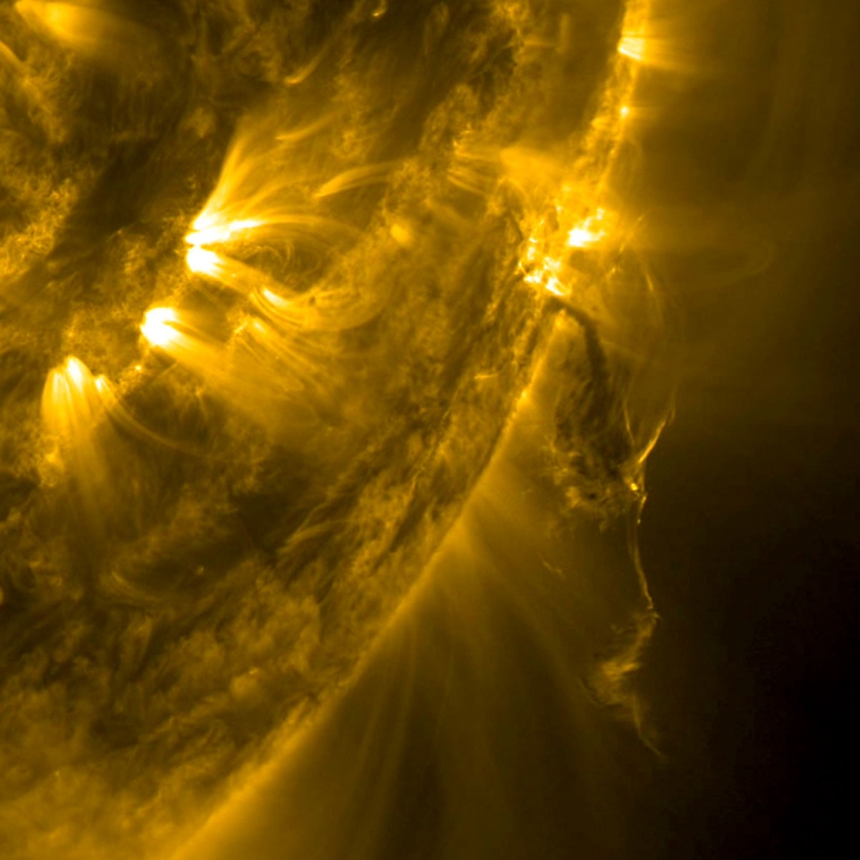 È un sottile groviglio di fili intrecciati, il getto di plasma che danza nello spazio della corona solare e ritratto in questo suggestivo scatto della sonda NASA Solar Dynamics Observatory, poco prima che una violenta eruzione di materia esploda dalla fotosfera della nostra stella nello spazio, con un’energia equivalente a decine di milioni di bombe atomiche.