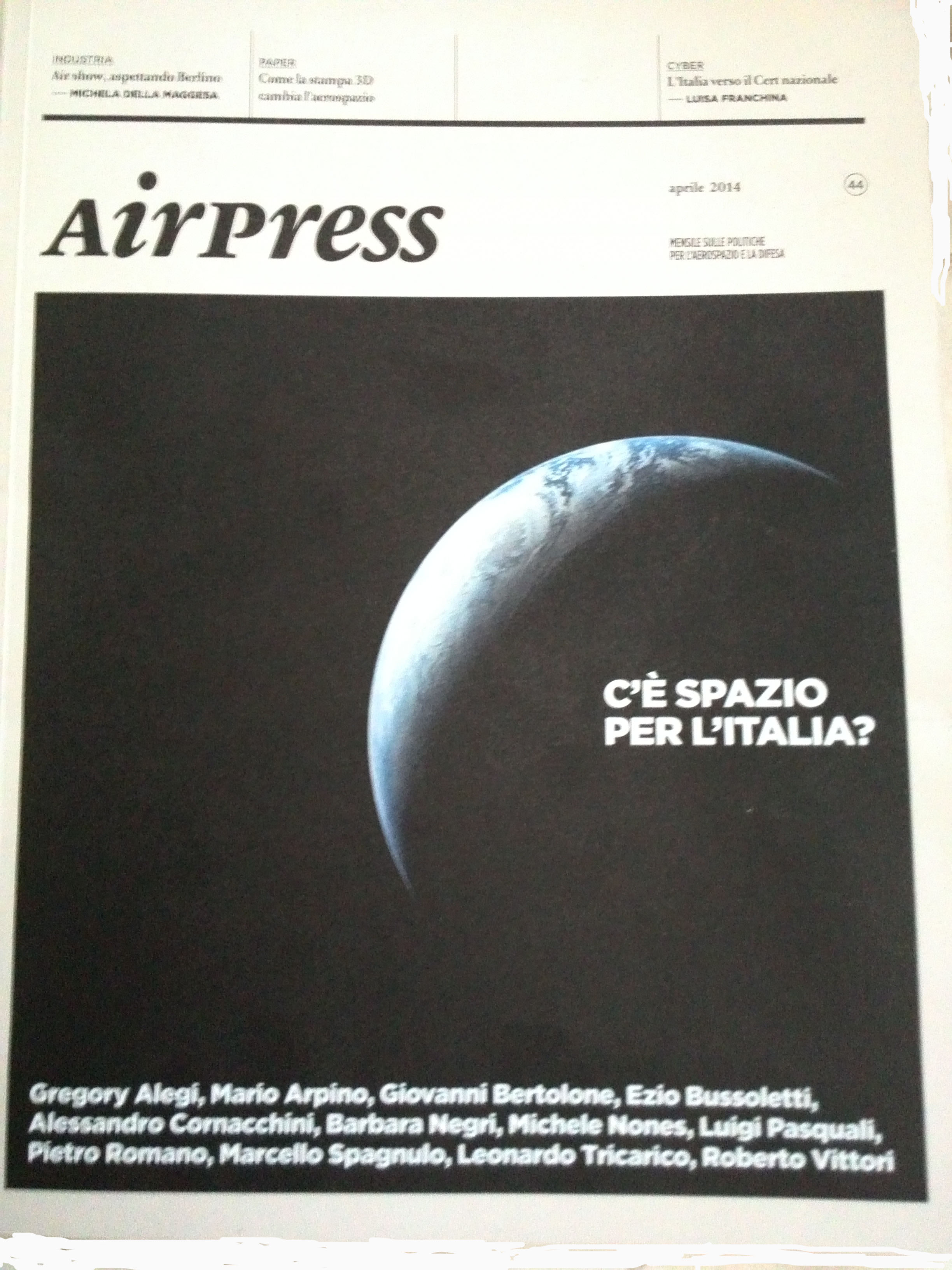 Nel numero di Aprile che ha accompagnato la tavola rotonda organizzata al Tempio di Adriano a Roma, il mensile ci illustra come il fulcro, passato e futuro, dello spazio sia la Difesa, in alcuni casi mostrando una insufficiente conoscenza della storia dello spazio italiano. E stride il citare, peraltro giustamente, il satellite AGILE, come successo della ricerca spaziale, in un contesto in cui il programma dello spazio italiano sia rappresentato esclusivamente dal sistema di Osservazione della Terra Cosmo SkyMed o al limite anche dal vettore Vega.