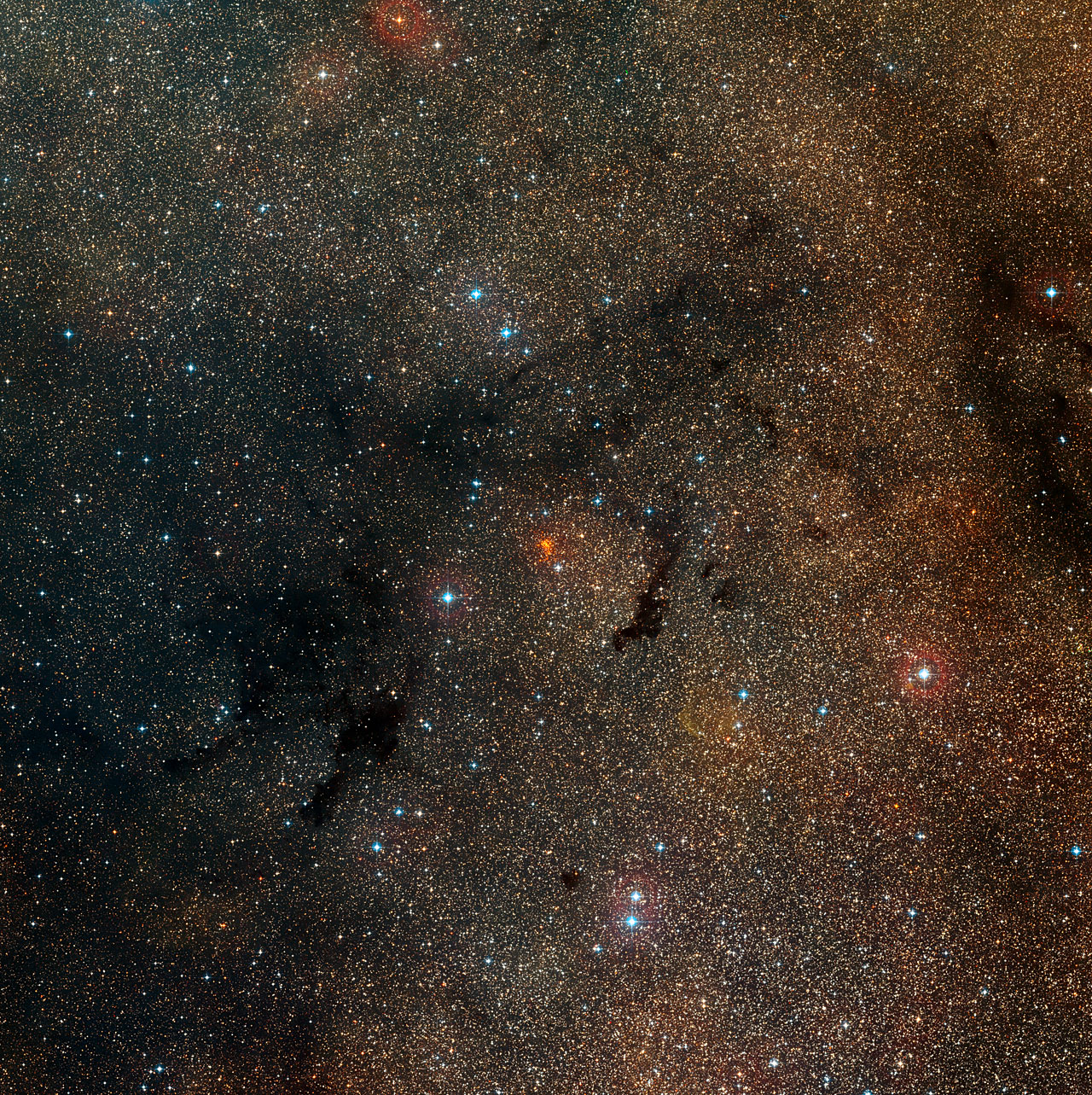 Panoramica del cielo intorno all’ammasso stellare Westerlund 1. Crediti: ESO/Digitized Sky Survey 2; acknowledgment: Davide De Martin