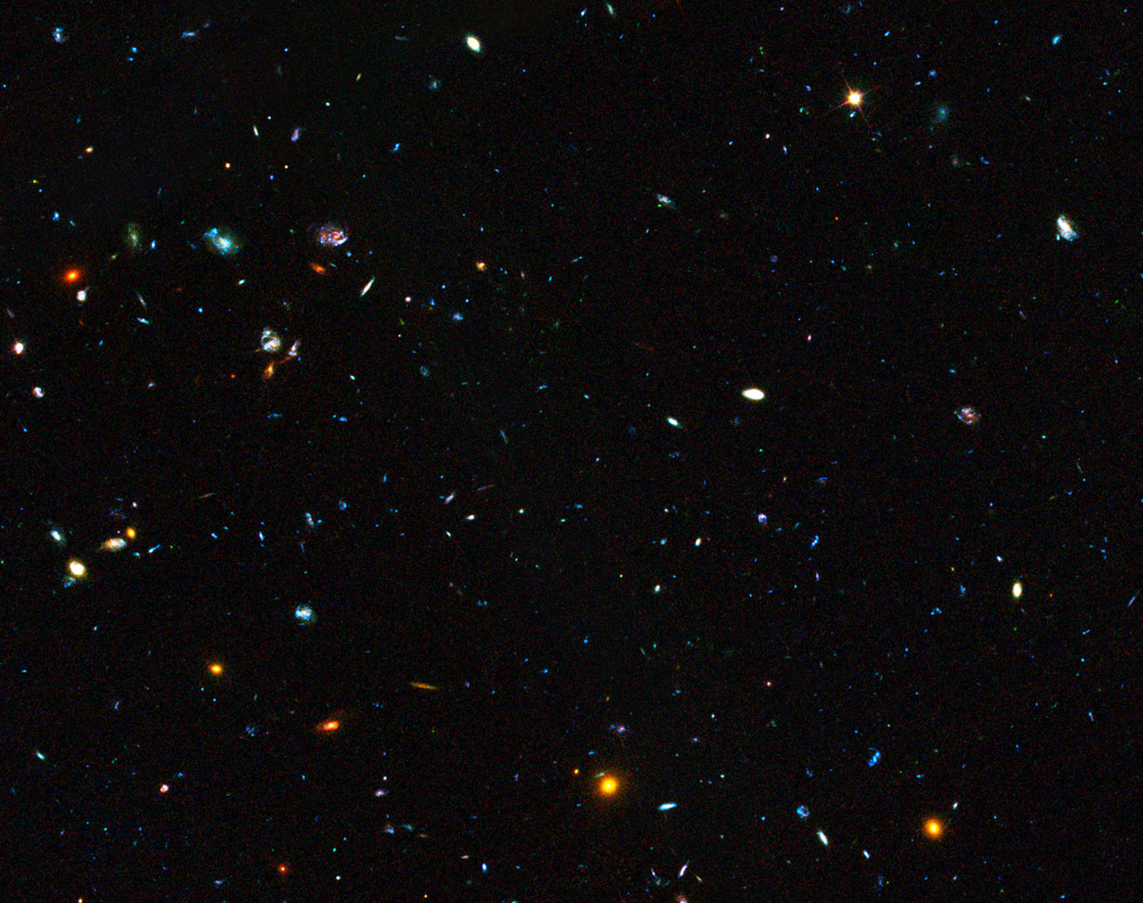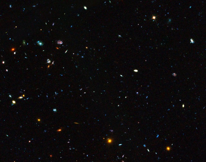 Questa immagine fa parte della Great Observatories Origins Deep Survey (GOODS), e mostra solo parte della porzione di cielo studiata. Crediti: NASA, ESA, il team GOODS e M. Giavalisco (STScI/University of Massachusetts)