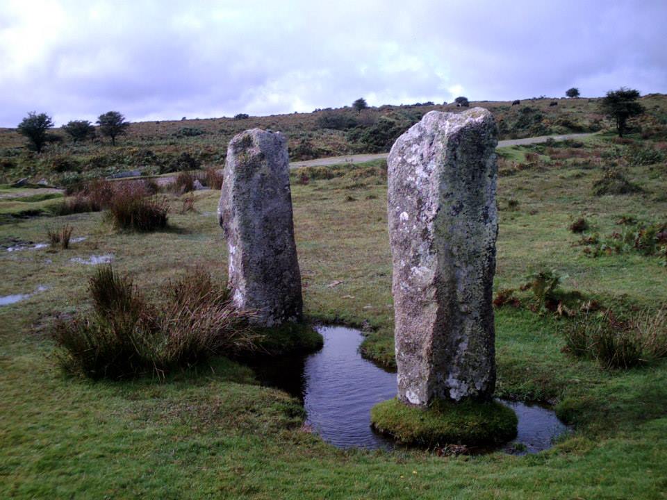 I Pipers solitari, megaliti esterni ai cerchi principali degli Hurlers. Sono orientati secondo l’asse est-ovest. Crediti: Brien Sheen