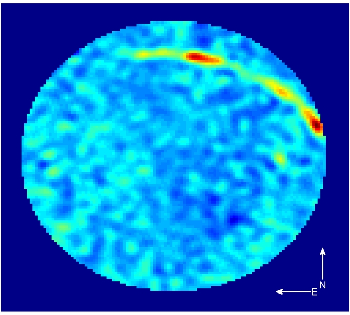 Immagine radio (ripulita dalle sorgenti costanti per chiarezza) ottenuta da LWA1 a 38 MHz il 21 gennaio 2014 di una rara meteora che ha lasciato una scia brillante durata oltre un minuto. Crediti: LWA