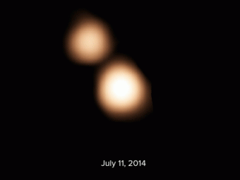 Animazione ottenuta da immagini ALMA che mostra la luna Caronte attorno al pianeta nano Plutone. Crediti: B. Saxton (NRAO/AUI/NSF)