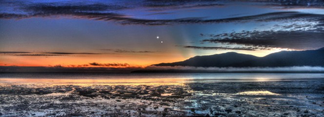 L’alba si affaccia sull’incantevole Cairns Esplanade nel Queensland, Australia, mentre Giove e Venere posano per lo scatto panoramico dell’astrofotografo Joseph Brimacombe.