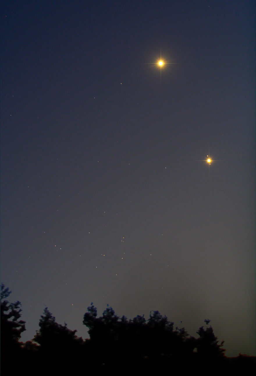 Venere e Giove: fari nella notte. Quasi scompare il brillante ammasso del Presepe ben visibile nella costellazione del Cancro nel cielo di Payson, Arizona. Crediti: Chris Schur.