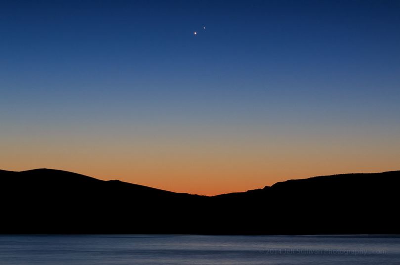 18 agosto 2014: le luci della città di Sulmona che non sembra dormire, il profilo dolce degli Appennini, l’affascinante congiunzione di Giove e Venere a picco sulla Valle Peligna, Italia. Crediti: Giuseppe Petricca.