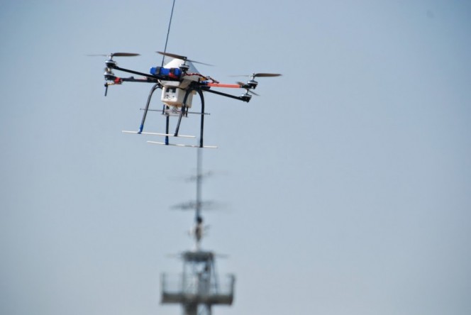 In cosa consiste il test? «L’apparecchio vola a una quota di 100 metri circa seguendo determinate traiettorie grazie ad un ricevitore GPS installato a bordo. Il drone è equipaggiato di un generatore a radio frequenza che attraverso un’antenna irradia un segnale noto che viene ricevuto a terra dall’antenna under test. I tecnici italiani poi misurano il diagramma di radiazione a varie frequenze dell’antenna under test, includendo anche il mutuo accoppiamento con le antenne vicine ed il contributo del terreno sottostante».