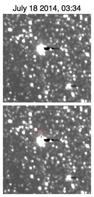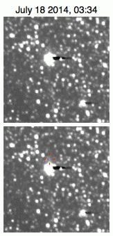 Animazione: la luna di Plutone Idra emerge debolmente nell’alternarsi delle immagini riprese dalla sonda spaziale New Horizons il 18 e 20 luglio 2014. Crediti: NASA / Johns Hopkins Univ. APL / SRI